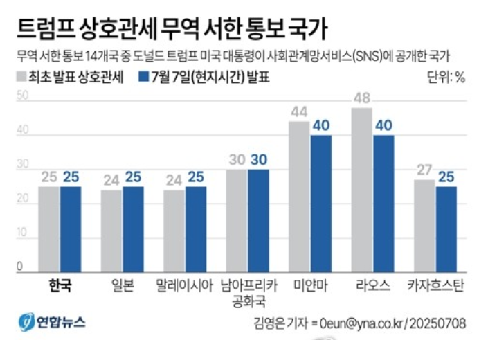 오늘(7월 8일) 새벽, 전 세계를 긴장시켰던 도널드 트럼프 미국 대통령의 '상호관세 부과' 소식에 큰 변화가 생겼습니다.