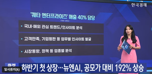 뉴엔AI는 20년 업력의 AI 빅데이터 분석 기술력을 바탕으로 미래 시대의 중요한 퍼즐 조각을 쥐고 있는 기업입니다. 성공적인 상장과 함께 앞으로의 행보가 더욱 기대됩니다.